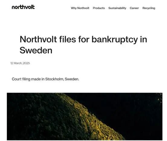 最近,欧洲最大的电池公司Northvolt 网站宣布,由于公司现金耗尽,瑞典已经宣布破产。