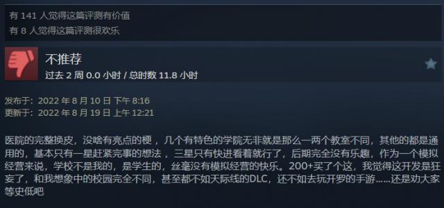 前代《 双点校园 》,陷入换皮《 双点医院 》争论,风评好坏参半。