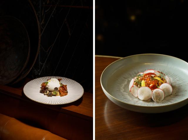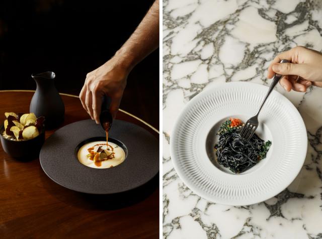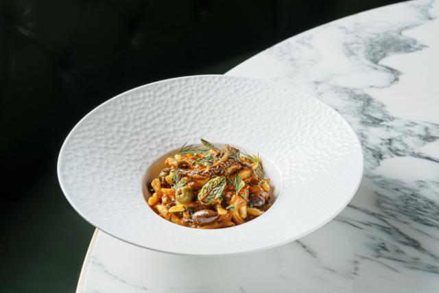 其中,布拉塔奶酪融合了时令蘑菇和帕尔马火腿,点缀着云南黑松露的香味。三文鱼塔塔将腌黄瓜、自制蒜味蛋黄酱、三文鱼籽等组合成柔和的喜马拉雅三文鱼,增添了回味。晚餐方面,蘑菇焖饭通过选择意大利卡纳罗利米,搭配蘑菇和黑松露带来浓郁的森林香味,而章鱼手搓面食则是基于手搓面食,搭配慢炖章鱼酱、橄榄和刺山柑呈现出丰富的味觉体验。