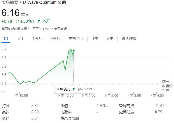量子计算概念股在美东时间星期三 D-Wave Quantum 股票价格一度上涨 18.8%。在过去的两个交易日里,这只股票暴涨。 25%。