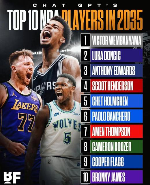 所以,十年后 NBA 世界上会有哪些人?现在有詹杜库,十年后呢!这个话题可以说是一个很有趣的话题。归根结底,一切事物总是向前发展,我们也期待着新事物的应时而生。近日,ChatGpt 十年后给予 NBA 十大明星的预测名单。在这些人中,勒布朗詹姆斯的大儿子布朗尼詹姆斯排名第十。坦率地说,把布朗尼放在这个位置上实在令人吃惊,毕竟布朗尼现在在这里 NBA 还没有站起来。但是后来谁又能说清楚呢?不妨对布朗尼保持清醒和期待吧!