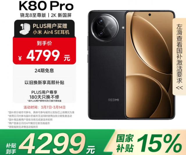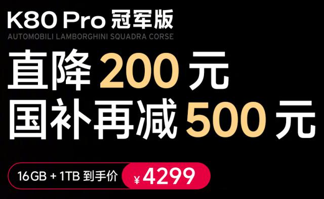 现在的普通版本 K80 Pro 16GB 1TB 国补后都要 4299 元!
