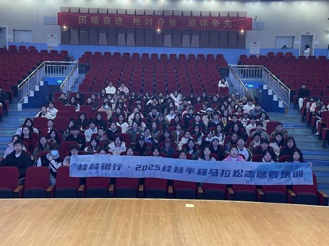 桂林银行 · 2025 桂林半程马拉松即将开始。为了保证比赛的顺利进行,提高志愿者的服务技能,统一服务标准,激发服务热情,营造有序、安全、和谐的比赛氛围,3 月 8 日 -3 月 10 日,组委会对广西师范学校的育才校区、广西师范学校雁山校区、桂林旅游学院、桂林医学院、桂林学院、 5 一个校园里的马拉松志愿者接受了培训。(详情请点击:桂林头条)