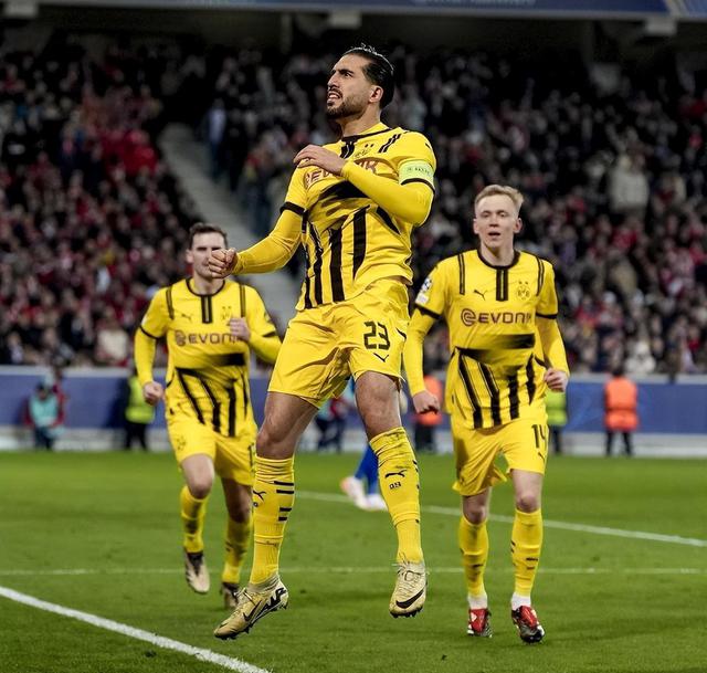 首回合多特在主场领先时被里尔扳平,二番战开始时,多特在主场领先。 5 在几分钟内,科贝尔还犯了一个低级错误,导致大黄蜂落后。多特在上半场继续错过得分机会后,在下半场及时醒来; 54 吉拉西在几分钟内制造了点球,埃姆雷 - 詹点球命中扳平比分; 65 几分钟后,吉拉西再次为拜尔送上助攻,后者兜射进入个人欧冠处子球。