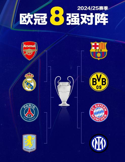 北京时间 3 月 13 一天早上,伴随着最后 4 场 16 强势淘汰赛第二轮比赛的结束,本赛季的冠军杯 8 强者也正式诞生;得到 8 巴萨、皇马、拜仁、多特蒙德、国际米兰、大巴黎、阿森纳、维拉都是强队。