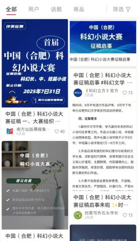 同时,小红书,哔哩哔哩、这个“科幻狂欢”也席卷了抖音、快手等社交平台。比赛中的图文视频已经分享了n次,评论区化身为“科幻迷大规模认亲现场”。大家纷纷留言:“仰望星空,创造未来,我的生活取决于我,我的思想是开放的。”“科技之城,也需要科幻作品的培育!”“积极参与,获得大奖!”著名编剧、作家宋方金在微博上看到征稿启事后,直接留言“挺好的”,为比赛加油。
