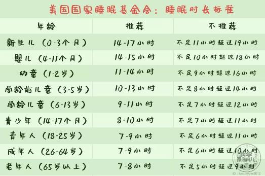 不同年龄的儿童睡眠时间不同。,为了帮助儿童调整睡眠时间,可以参考美国国家睡眠基金会的睡眠时间标准。