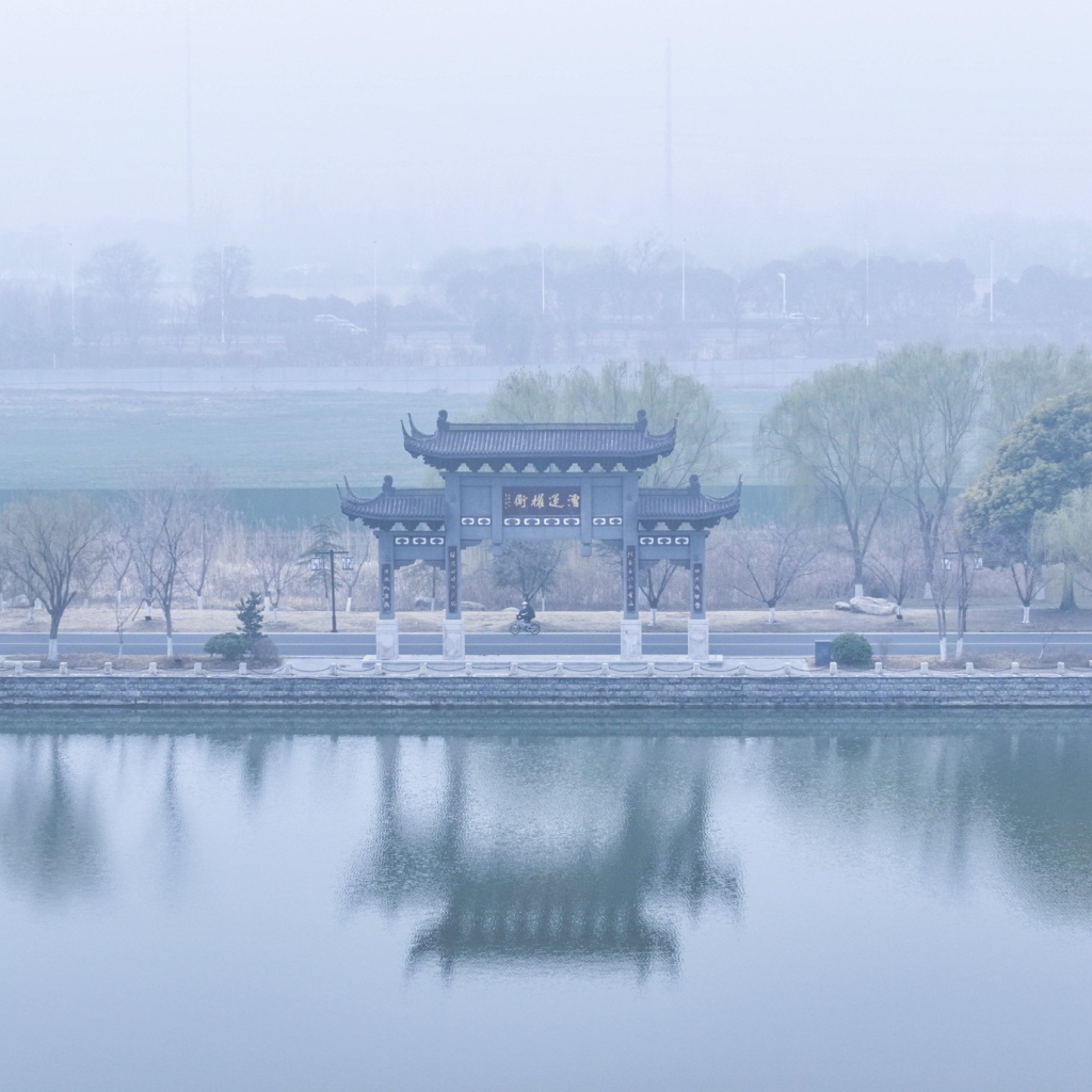 三月十二日,江苏淮安,部分地区出现大雾,可见度低于100米,市民在运河上缓慢出行。