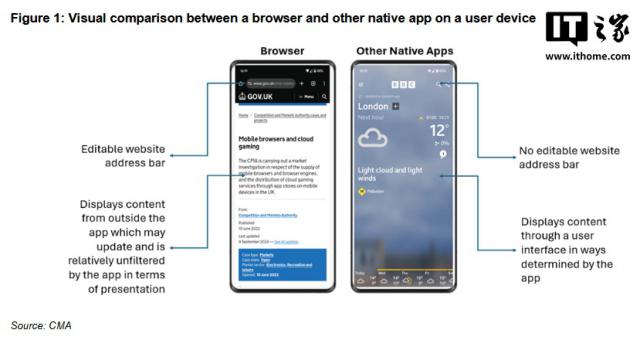 IT 世家 3 月 13 英国竞争与市场管理局日新闻(CMA)昨日(3 月 12 日)发布 18 页面调查报告指责苹果使用所有浏览器 WebKit 引擎,在 iPhone 第三方浏览器创新上限。