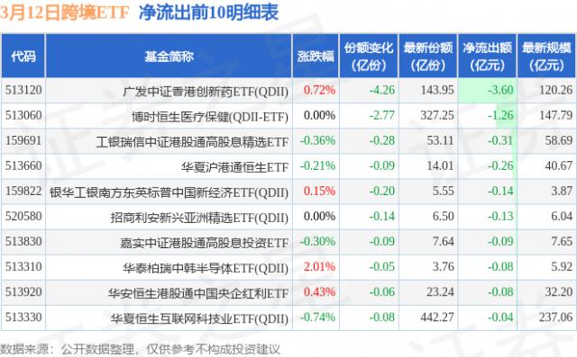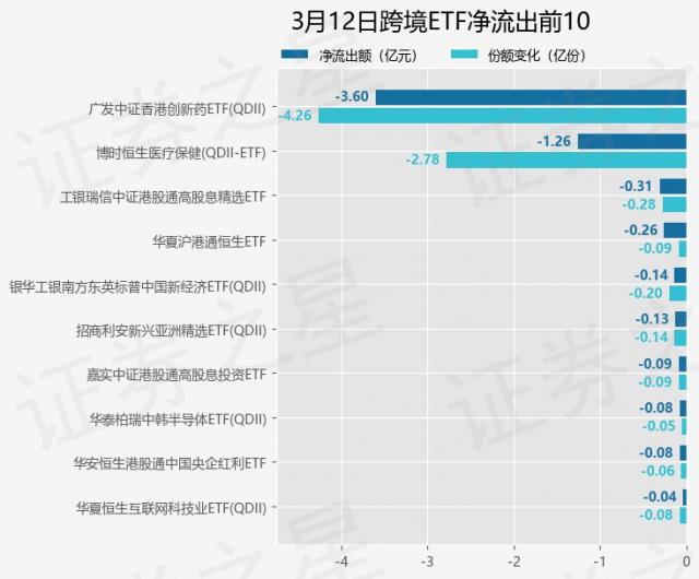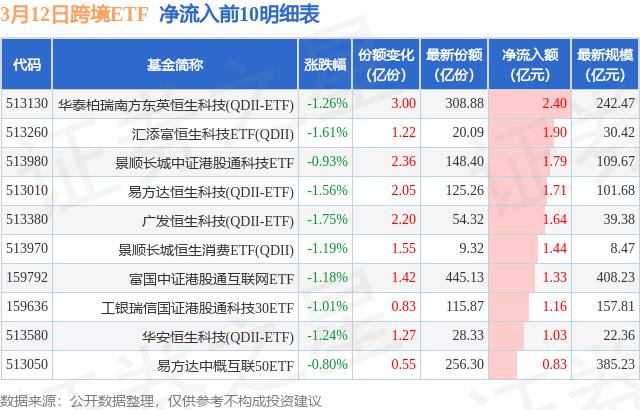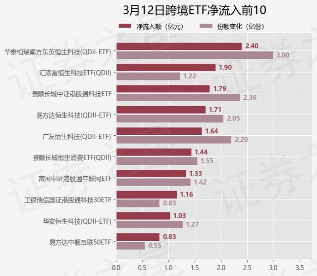 三月十二日,跨境ETF净流入18.03亿元