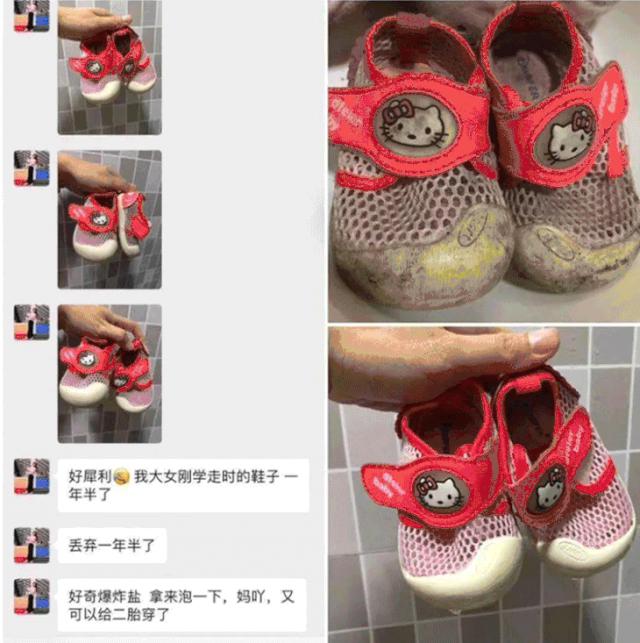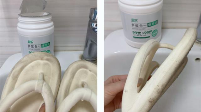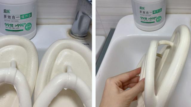 现在直接浸泡!首先,在水中溶解爆炸盐的粉末,制成溶液,将整双旧鞋浸泡在溶液中。浸泡 30 大约一分钟。再用旧牙刷轻轻摩擦两下,污垢全部掉落,轻松恢复鞋子原来的样子,省力!