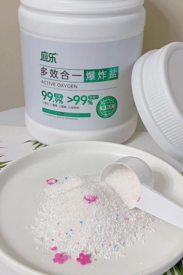 过氧碳酸钠(过碳酸钠)是市场上大多数爆炸盐的主要成分,溶于水后,将其分解为碳酸钠、活性氧。