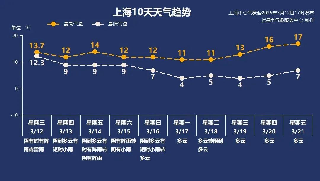 本周整体温度保持在7~14℃之间。下周,随着天空的开启,昼夜温差增大,最低温度在5℃左右,早晚冷。注意添加衣物;最高温度每天都在上升,可以从周初的11℃上升到周中后期的17℃。