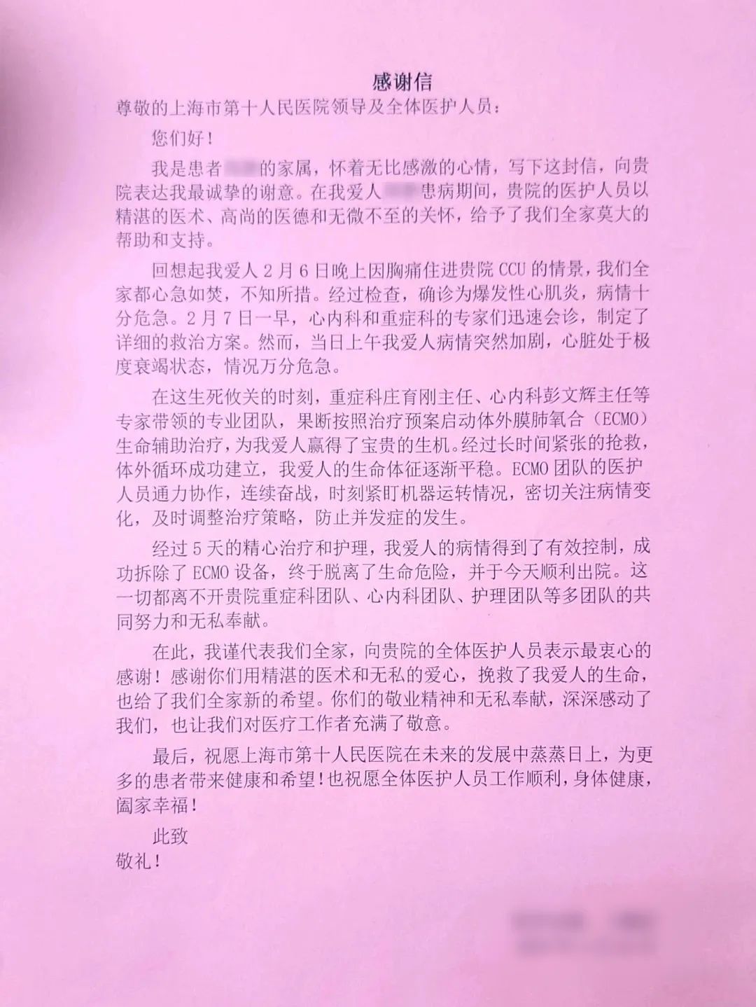 五天后,周女士病情得到有效控制,脱离生命危险,成功取消ECMO,转回心血管内科病房。随后,彭文辉主任带领团队精确对症治疗心肌炎。到2月底,患者终于康复并顺利出院。