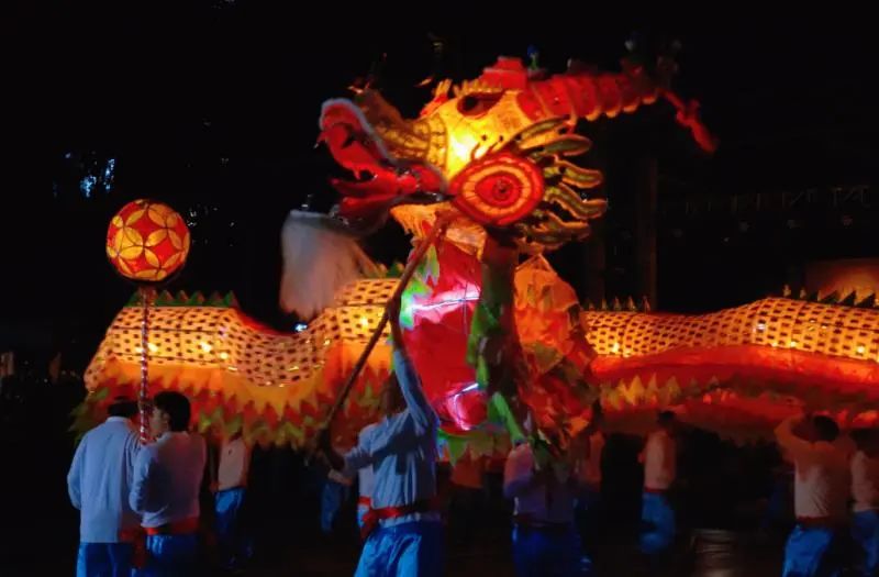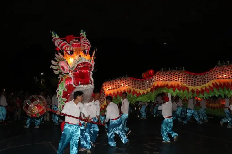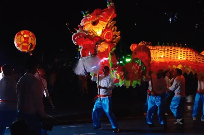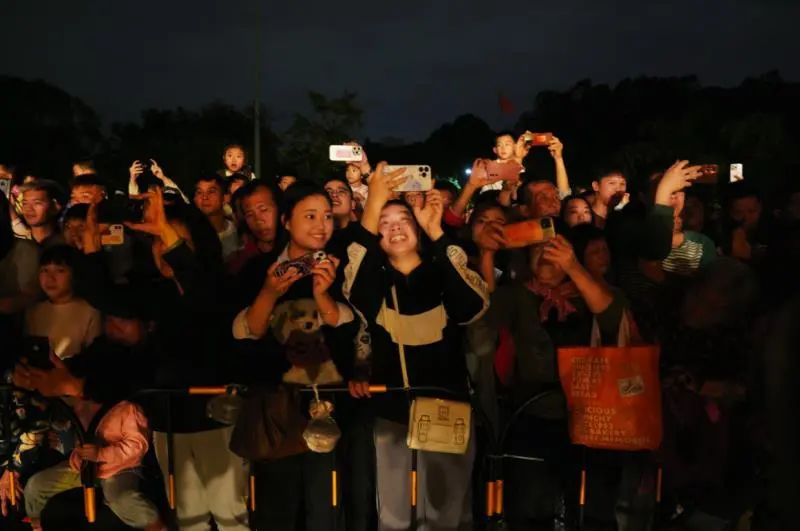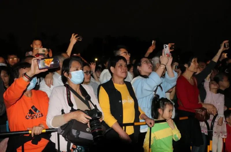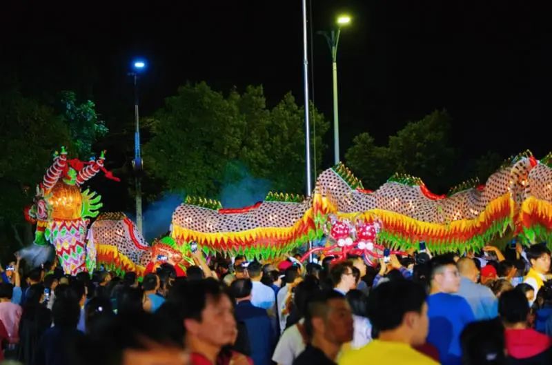 晚上8点,伴随着铿锵有力的锣鼓声,龙狮出现了。作为本次活动的“重磅嘉宾”,芝山纱龙的舞姿多种多样,为观众带来了16场精彩的表演。纱龙总长57米,共24节,120人交替跳舞。舞蹈时,烛光闪闪发光,蜿蜒数十米,有时回旋昂首,仿佛要冲走,有时滚动,像在海里寻找珠子一样生动,千姿百态,让观众惊叹不已。