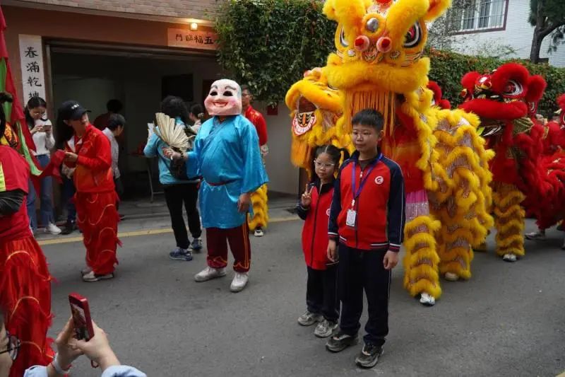 现场,坦边雄生馆狮子醒来队带来的狮子醒来表演也赢得了观众的欢呼和掌声。伴随着明亮的锣鼓节奏,六头狮子在表演者的诠释下生动地滚动或跳跃,“大头佛”手持向日葵扇与狮子互动。场景生动有趣,喜庆洋溢。