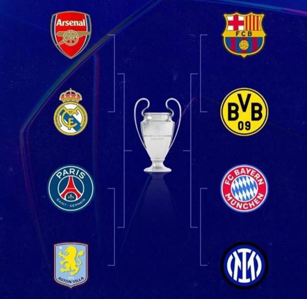 皇马、阿森纳、多特蒙德、阿斯顿维拉,以及昨天晋级的巴萨、拜仁、国际米兰和巴黎,本赛季欧冠冠军联赛。 8 所有的力量都诞生了,下一轮 1/4 决赛比赛:皇马 vs 巴黎阿森纳 vs 巴萨,阿斯顿维拉 vs 拜仁,多特蒙德 vs 国米。