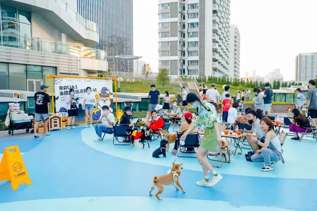 深圳来福士广场还利用项目中的天台,打造了一个5000平方米的“天台宠物公园”,不仅分为宠物游乐区、舞台活动区、艺术展厅、遮阳草坪区,还配备了专属通道、宠物饮水点、宠物清洗点等便捷设备,为人与宠物之间的互动提供了支撑。