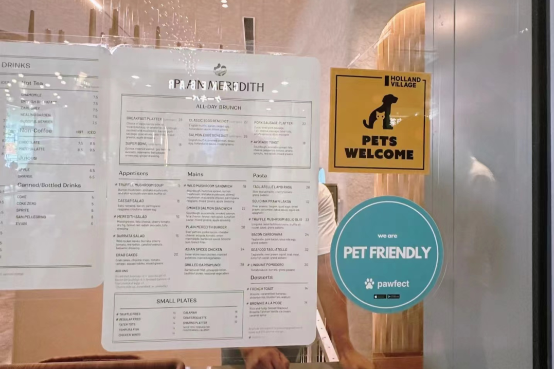 近年来,宠物服务在空间中的重建也在国际市场上不断升级。One项目One,定位于社区商业。 Holland Village,除了打造宠物专用饮水台、宠物电梯等设施外,还对项目中近20家允许宠物进入的餐厅和店铺进行了详细的标志分类。——
