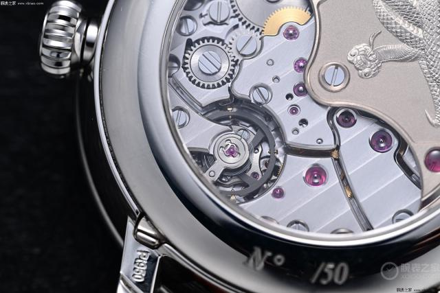 翻出表背,金摆上的立体蛇形浮雕立刻引起了人们的注意。在过去的文化中,蛇代表着敏锐和智慧。宝珀的制表大师雕刻技艺精湛,生动地描绘了蛇的形状,鳞片的细节清晰可见。摆陀上也刻着 "乙巳" 二字,传统文化与造表工艺如此巧妙地融合在一起。