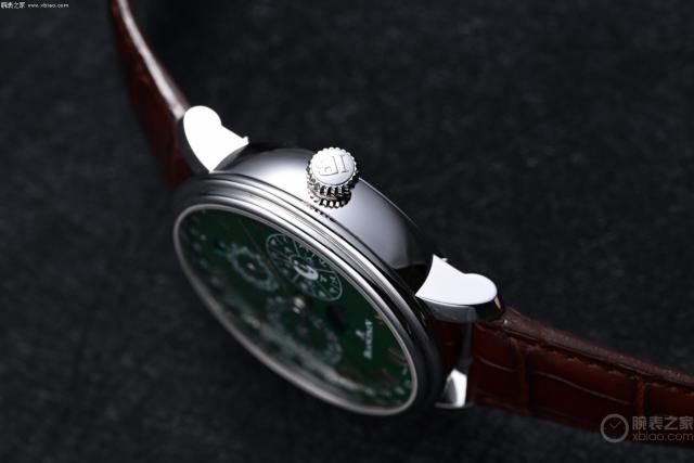 宝珀的隐藏校准系统也为这款手表加分不少。手表耳朵下面的校准按钮设计得非常巧妙,无需工具即可轻松完成历法校准。这种设计不仅让手表看起来更好,还配备了安全校准保护装置,避免了校准雷区操作中可能造成的损坏风险。