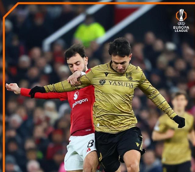 比赛开始后,皇家社会便打出喧宾夺主的气魄, 10 曼联在后场失球几分钟,在德里赫特防守的时候,埃卢斯通多右路横传,放下奥亚萨瓦尔,裁判在观看后判罚点球;后者点球稳定命中,0:1,总比分 1:2!幸运的是,曼联迅速做出了回应, 15 分钟,精确的卡塞米罗长传转移,B 在费反越位前插入无私横敲之前,霍依伦的抢分被苏贝尔迪亚放下,裁判也判给曼联点球;B 费用操刀命中,1:1,总比分 2:2!