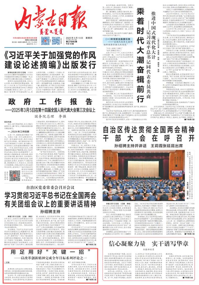 全国两会刚刚闭幕,改革创新再次成为高频词和关键词。全区各级在实践中积累了许多改革的“好方子”。、创新“金点子”,用好“关键招数”,啃下“硬骨头”,推动发展顺利进行,一年四季走红。我们一定会写出更多关于中国现代化内蒙古的新篇章。