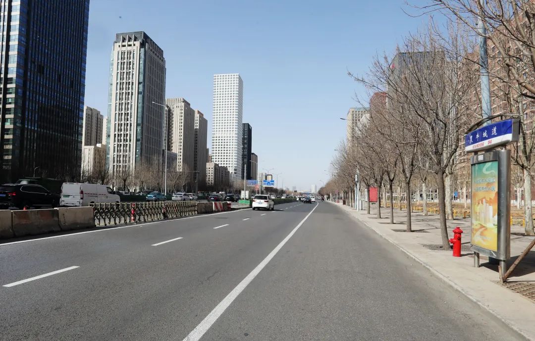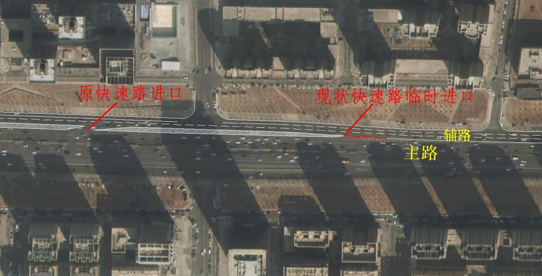 早晚高峰期,交通部门安排警力在此点值班。根据交通量的即时情况,开启临时入口,通过“双入口”向东向西辅路的车辆可以进入主干道。