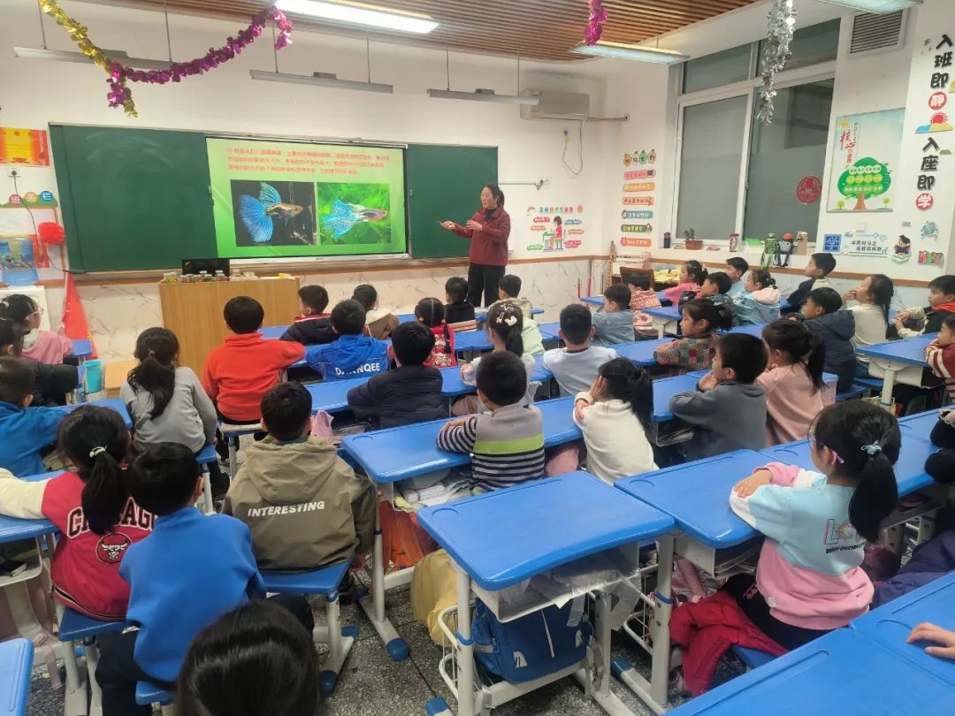 胡军娜老师带领学生们用精美的图片和视频了解了各种各样的鱼,从五颜六色的热带鱼到巨大的鲸鲨,从生活在深海中的神秘鱼到我们餐桌上常见的鱼。学生们目不转睛,惊叹不已。她用通俗易懂的语言讲解了鱼的身体结构、生活习惯和独特技能,回答了学生对鱼的各种疑问。