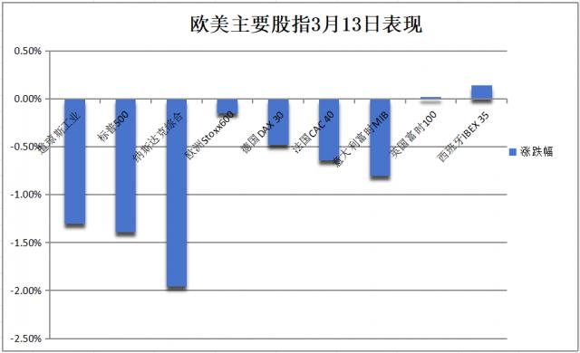 欧美股市:道指跌 1.3%,标普 500 指数跌 纳斯达克下跌1.39% 1.96%。欧洲 STOXX 600 指数跌 0.15%。