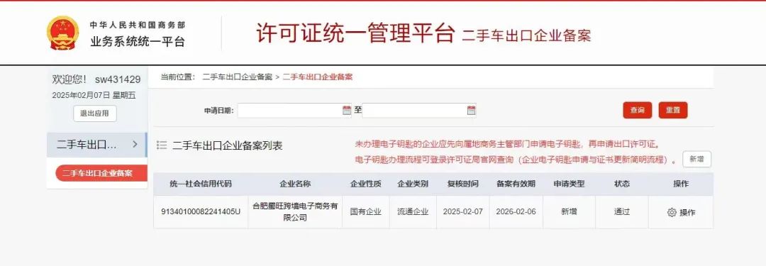 近日,合肥舒旺跨境电商有限公司成功获得二手车出口资质,是今年安徽省首家获得该资质的企业。未来,公司将规划打造二手车出口综合创新平台,为车辆制造商、经销商和客户提供一站式二手车出口服务,促进二手车出口行业健康优质发展。