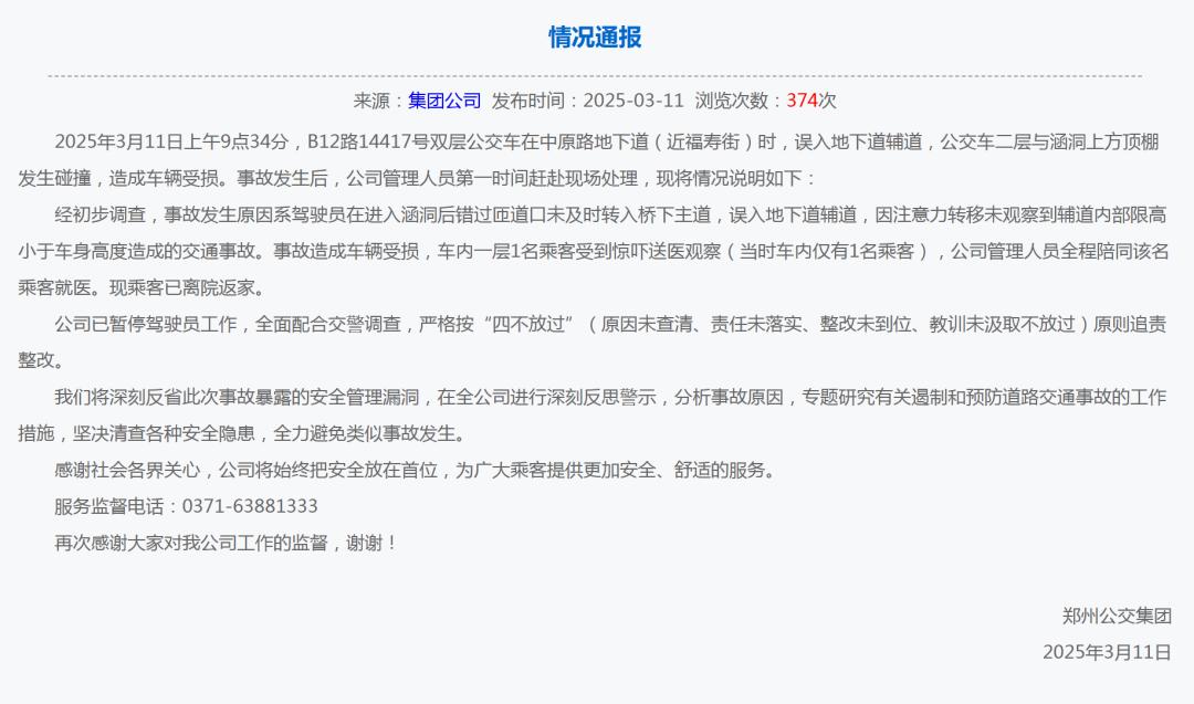 经初步调查,进入涵洞后,司机错过匝道口,没有及时转移到桥下主干道,误入地下辅道,因为没有观察到辅道内部限制高度高于车身高度,最终导致交通事故。