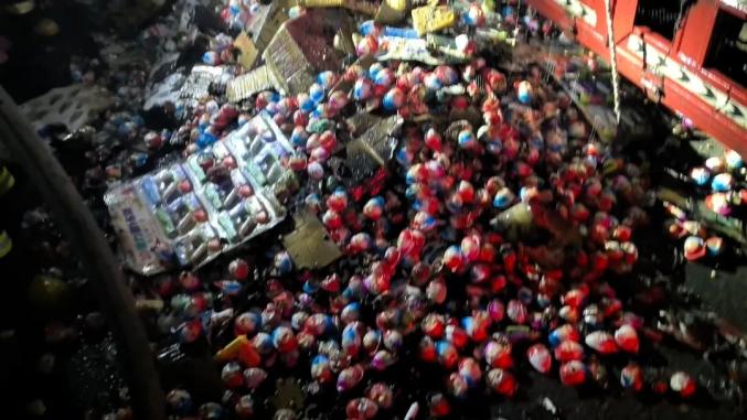 深夜,江西境内的一辆卡车着火了!价值50万元的小吃,玩具…