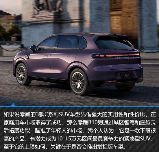 零跑车曾经说过不会进军 30 一万多元的市场,而是更广阔的大众市场。在“爸爸车”领域站稳脚跟后,如何扩大年轻市场成为零跑的下一个目标,而零跑则是 B10 正是为了承担这个使命。对于一个新的力量品牌的新车型来说,向更广阔的市场迈进并不容易。然而,凭借零跑对汽车市场的深刻理解和城市智能驾驶技术的推动, 15 一万元以下的决心,这款车未来无疑值得期待。