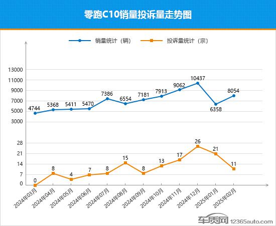 作为零跑 LEAP 3.0 第一款全球战略车型在技术架构下,零跑 C10 上市备受关注。但是从它的市场表现来看,似乎有点慢。虽然销售额一直处于上升阶段,但是直到 2024 年 12 月份才突破万元,相对于那些汽车市场的“黑马”来说,这个月销量就突破万元,零跑 C10 确实有点低调。进入 2025 年,零跑 C10 经过短暂的市场调整,于 2 月份迎来销售小幅反弹。与此同时,其月投诉数量也出现了“两连降”,达到了自我。 2024 年四季度以来的最低点,口碑表现日益提升。随着投诉数量的减少和销售的增加,零跑 C10 在 2 每月投诉销售比例降至个位,表现较好。 1 每个月都有明显的进步。就其未来的市场走势而言,脚踏实地近一年,也应该迎来自己的高光时刻。