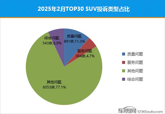 2025年2月TOP30 对应于SUV销售投诉量的评估。