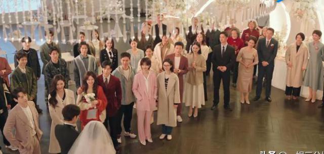配角们一个个站在会场中央看着两个人,这场婚礼简单程度堪比隔壁《爱你》的低配版。