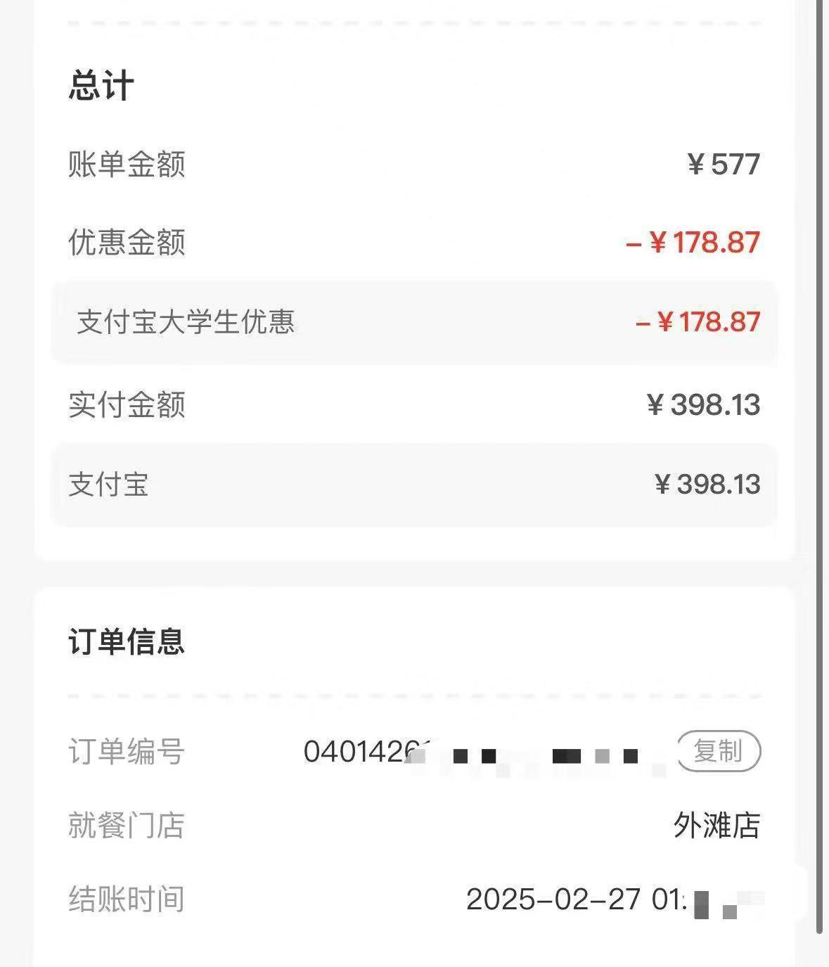 (小椰子2月27日在海底捞上海外滩店消费)