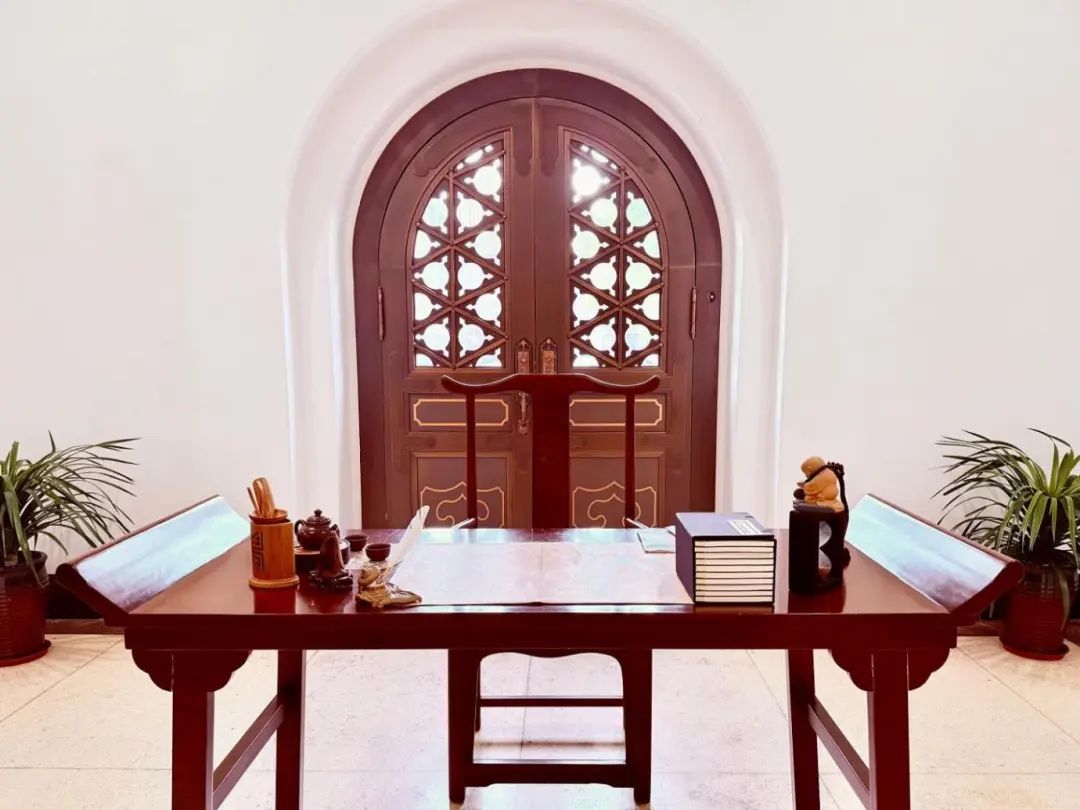 通过历史图像、文献档案和实物展品,展览内容丰富,形式多样,全景呈现了孙中山先生在沪的革命实践和建设理念。展区专门设置了一个半圆形拱门和泛黄文献的复古办公场景体验馆,再现了百年前的工作场景。