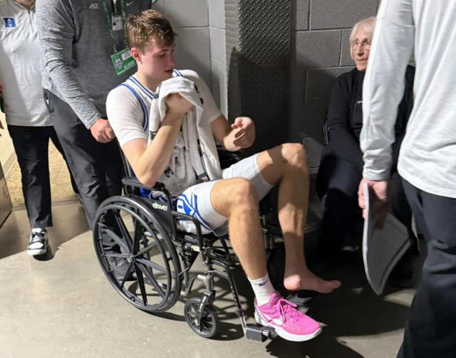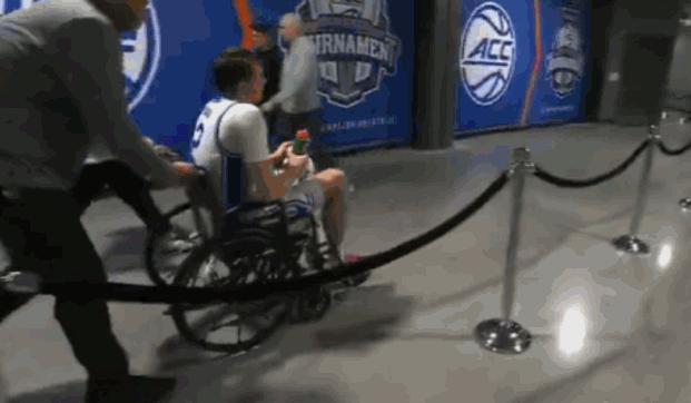 坐在替补席上十分钟后,弗拉格站起来,双手抱住两个队友,被扶着去换衣服间接受检查。常规赛期间,弗拉格是杜克大学(战绩) 28 胜 3 负面)场均奉献 19.4 分、7.6 个篮板和 4.2 次助攻。