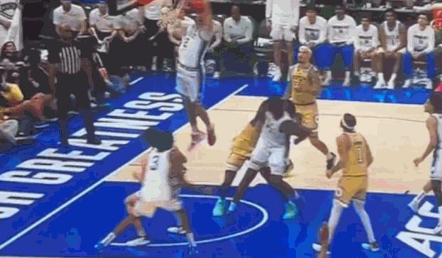 在没有人争夺的情况下,弗拉格跳起来争夺篮板,落地时左腿似乎踩到了佐治亚理工学院球员达里恩。 - 萨顿的脚底,然后摔倒在地。