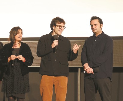 玛格丽塔·维卡里奥(左一)在u2003u2003中、在电影节开幕式上,菲利普·巴尔巴加洛(左二)和米拉德·唐希尔。 资料图片