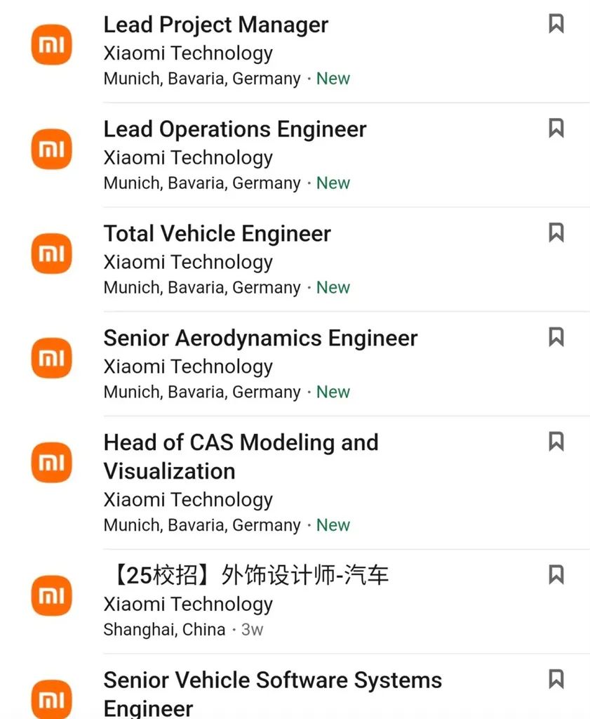 与此同时,业内也有消息称,小米汽车现在正在德国慕尼黑招聘高级经理、运营人员、全车/底盘工程师等岗位,为国外市场进行本土化适应,为R&D中心的建设提供保障。