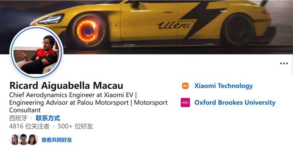相应的,小米还低调地挖了两位德国汽车行业的老手,他们是瑞卡德·艾瓜贝拉·马考,前法拉利空气动力学工程师。(Ricard Aiguabella Macau)、鲁道夫,前宝马汽车工程师,迪特里希(Rudolf Dittrich)。