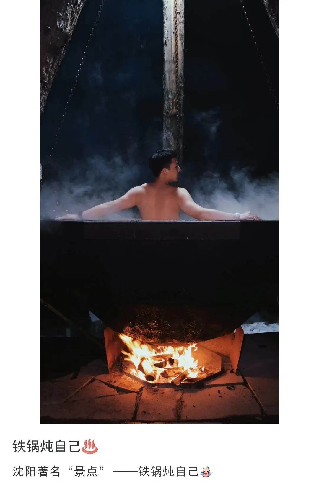 沈阳的清河半岛也不甘落后,室内泡腻了。可以去户外“铁锅炖自己”,一大锅一把火,把东北铁锅炖的文化展现到极致。如果你厌倦了安静的浸泡,不要担心,还有一层大漂流,随时结合动静。