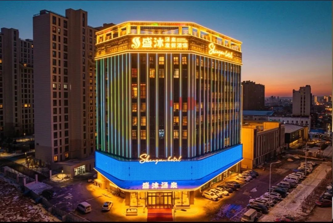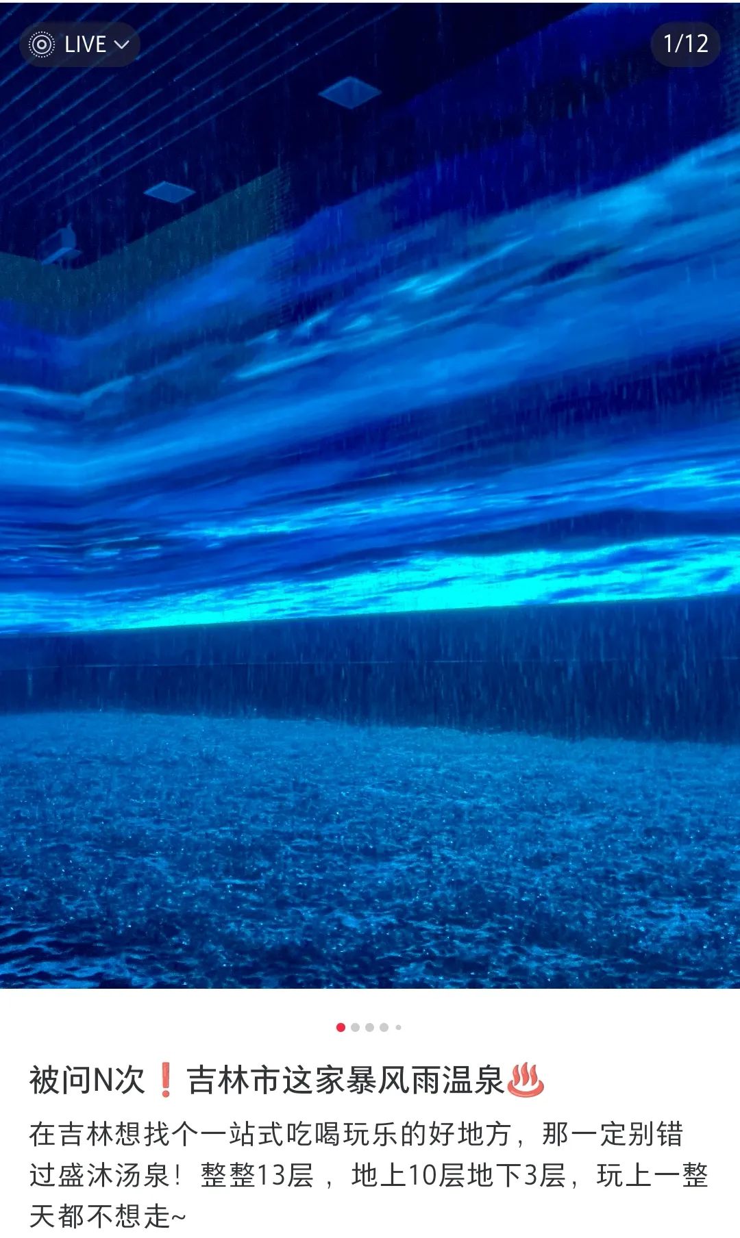 更有甚者,比如吉林13楼高的盛沐汤泉,也为视听触感的5D“暴雨温泉”创造了另一个空间。倾盆大雨从上到下演绎,扬声器雷声隆隆,屏幕上的闪电划破了夜空。