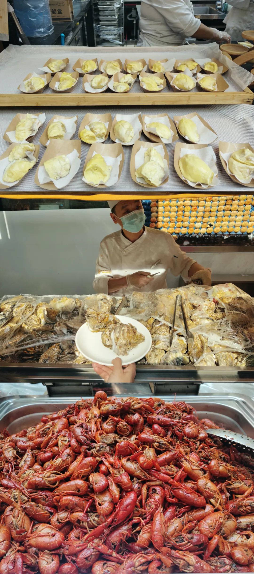 在其他汤泉的很多自助餐厅,海陆空都聚集在一起开会,比如海鲜、帝王蟹、三文鱼、波士顿龙虾,牡蛎、龙虾、鲍鱼都藏在他们面前;比如水果、榴莲、菠萝蜜、百香果坐在前面,草莓似乎被忽视了;还有西北的肚包肉,北京的烤鸭,四川的烤鱼,湖南的牛蛙。
