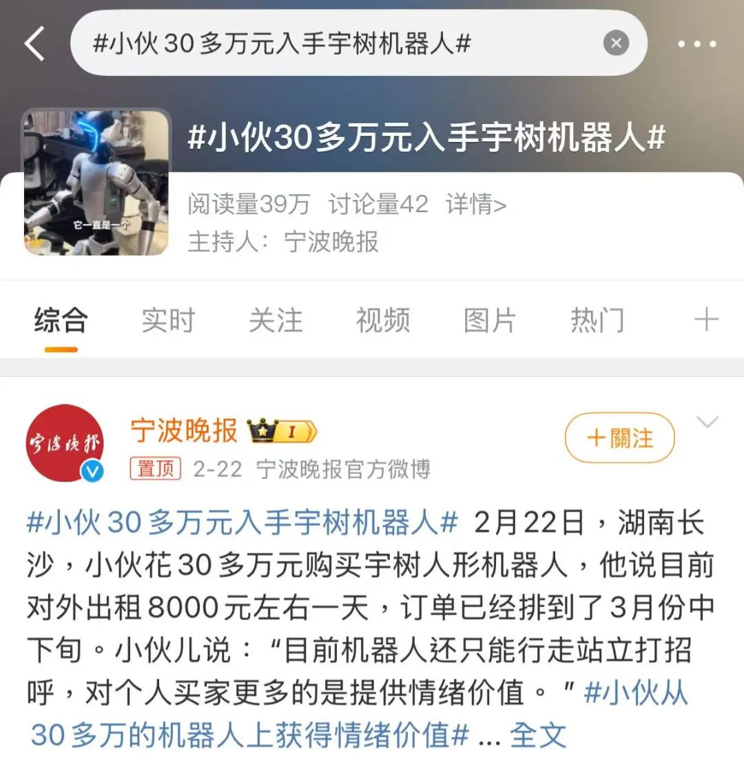 最近,一则名为“小伙子30多万买机器人一天租8000”的新闻登上热搜,迅速引起了公众的高度关注。