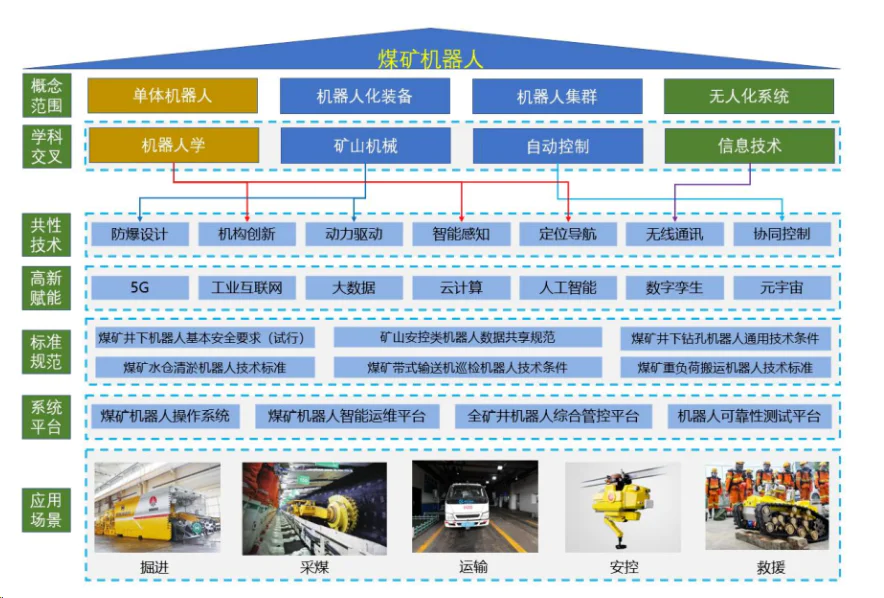 在国家发展和改革委员会联合发布的《关于加快煤矿智能化发展的指导意见》中,明确了煤矿智能化的阶段性目标。到2025年,大型煤矿和灾害严重的煤矿基本智能化,实现开发设计、地质保障和开采(剥落)、运输、通风、物流清洗等系统的智能决策和自动化协同运行,机器人在地下重点岗位工作,露天煤矿实现智能连续运行和智能运输。