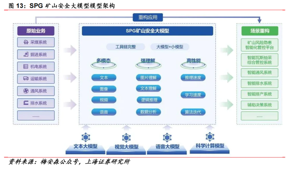 目前,该公司已成功推出基于SPG矿山安全模型的智能瓦斯采矿综合控制系统。SPG矿山安全模型是AIGC、CV、通过赋能安全监控系统、采集系统、人员定位系统、排气系统和排水系统等分系统,NLP等前沿技术构建的多态大模型底座提高了专业分系统的智能化水平。